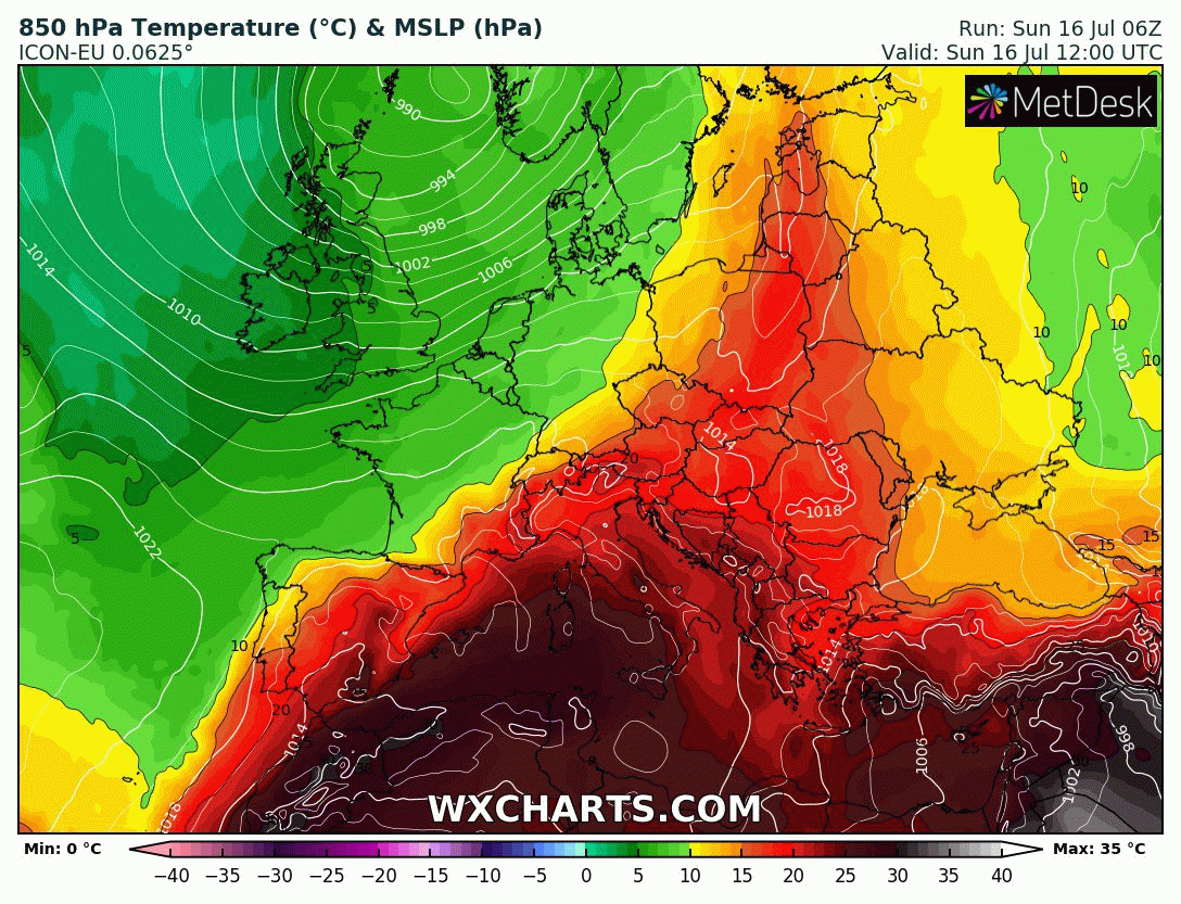 Evolución de la temperatura a 1.500 metros de altura para la próxima semana: sigue la burbuja de aire caliente