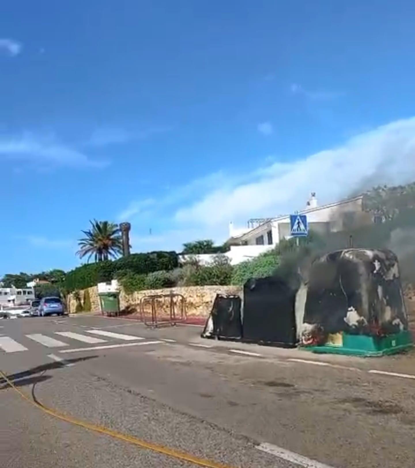 Una dotación del parque de bomberos de Maó se desplazó al lugar de la ubicación de los contenedores en la calle de s’Amfós Blau, entre Binibèquer y Torret, pero los recipientes quedaron consumidos por el efecto del fuego. Los profesionales de la extinción acabaron de apagar las llamas y refrescaron la zona contigua, sin que se pudiera dar con el responsable del nuevo atentado a este bien urbano.