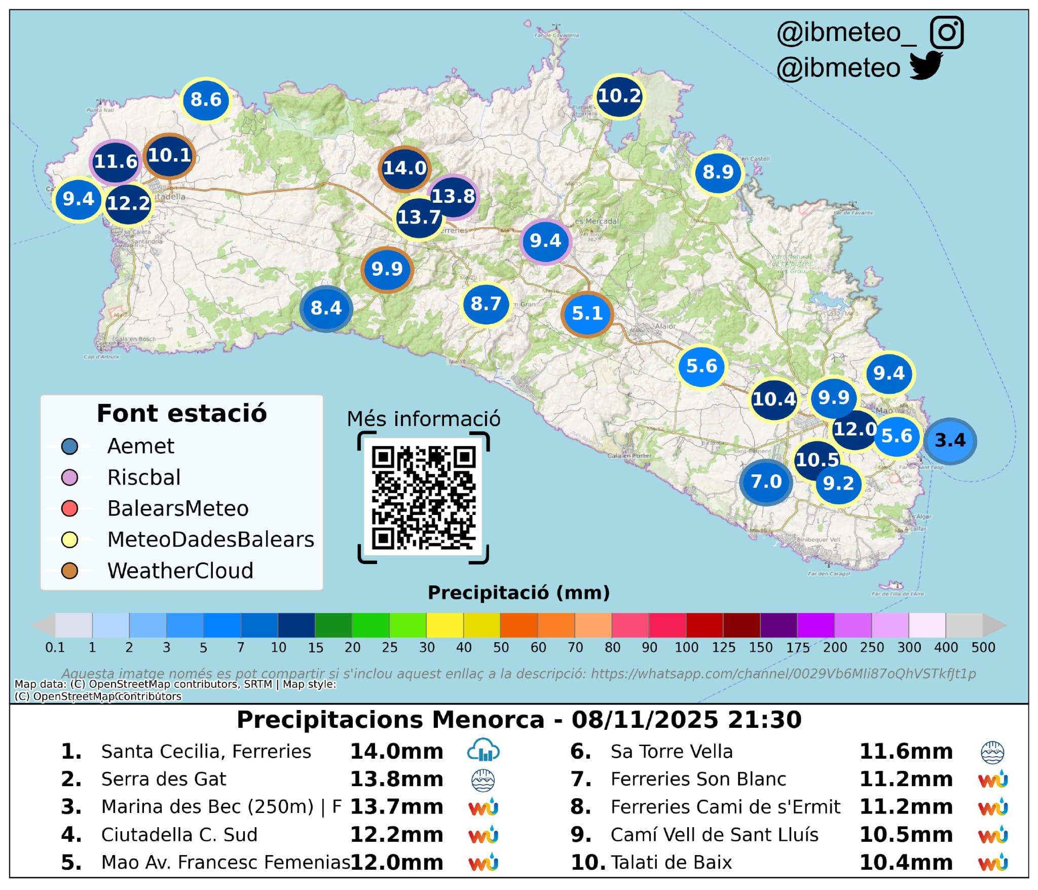 A pesar de que la Aemet había elevado a naranja el aviso por lluvias intensas para hoy sábado, Menorca ha vivido una jornada marcada por la inestabilidad meteorológica, pero con lluvias moderadas e intermitentes a lo largo del día y temperaturas que se han mantenido en torno a los 14 grados. Las precipitaciones, aunque de carácter irregular, han dejado un ambiente húmedo y fresco.