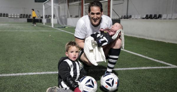 QUE el experimentado jugador del Alaior Javier Zurbano celebrara el sábado el título de Liga Regional obtenido por su equipo tras vencer al Sporting de Mahón por 4-1 bien acompañado sobre el césped por sus dos hijos, la pequeña Chiara, de poco más de dos meses, y Luca, que ya se desenvuelve bien con un balón en sus manos.