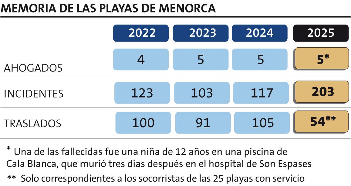 Enlace de origen : Récord de incidentes y cinco personas ahogadas en Menorca en la temporada de baño