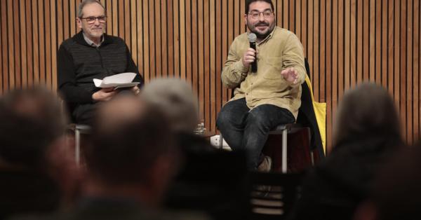 Bartomeu Obrador Cursach (Ciutadella, 1990) va presentar i recitar ahir a la sala d’audiències del Claustre del Carme de Maó la seva obra «Plaquette de Préveza», premi de poesia per a Joves Gumersind Gomila d’enguany. Una obra que destaca per «la riquesa de la llengua, a la recerca de l’expressió més exacta i a la vegada més útil a l’estètica». En va parlar així a la introducció i diàleg amb l’autor el poeta Pere Gomila, membre del jurat d’aquest premi en la segona edició i que convoca l’Ajuntament de Maó. El jove Bartomeu Obrador, membre de la secció de llengua i literatura de l’IME, escriu poesia, diu, abans de la seva vocació per la filologia clàssica, matèria amb la qual es va doctorar per la Universitat de Barcelona.