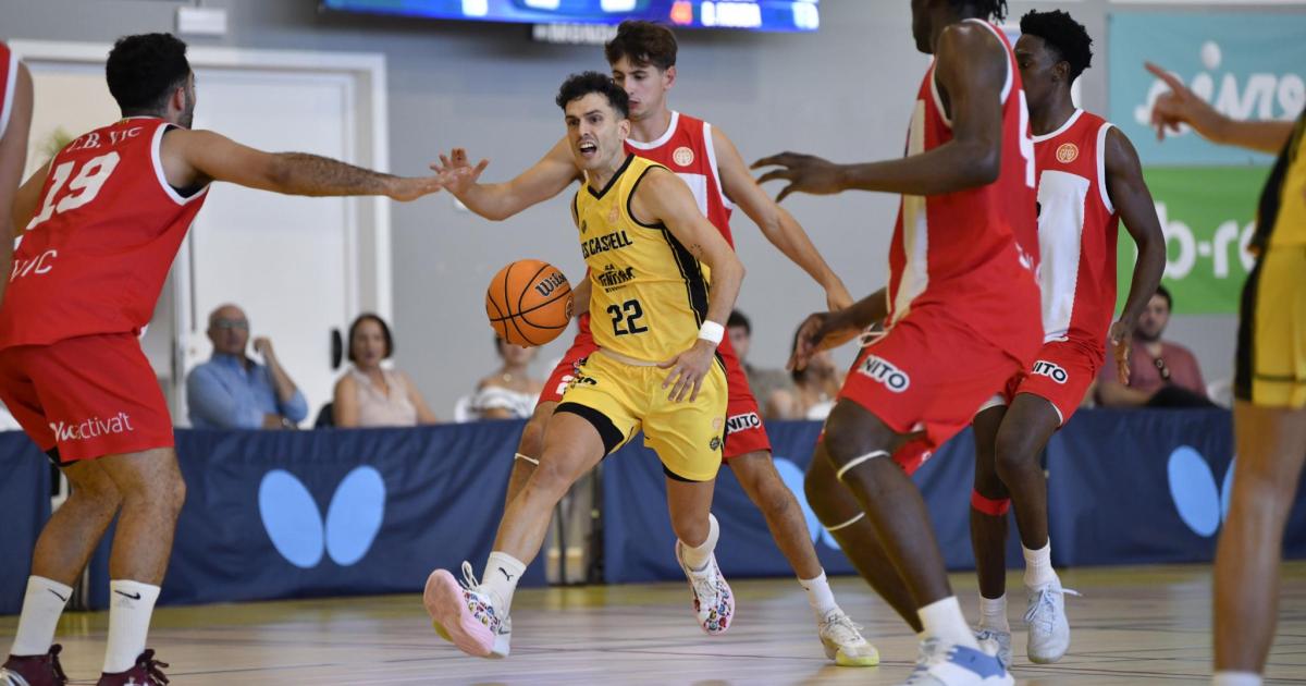 Experimentando un crecimiento sostenido en defensa —Sergi Llufriu, clave en este aspecto con 12 rebotes, 8 de ellos defensivos—, el conjunto dirigido por Raúl Jodra aceleraba una marcha más para escaparse justo antes del intermedio. Era entonces cuando aparecía desde la esquina Guillem García, el hombre clutch de Es Castell, para dejar el marcador en un 39-45 que hablaba sobre un partido de fuerzas muy parejas: ambos equipos en 10 de 18 en lanzamientos de dos, pero el acierto de Es Castell en el triple marcaba una diferencia mínima —6 aciertos insulares por los 4 catalanes en los mismos 13 intentos— al descanso.